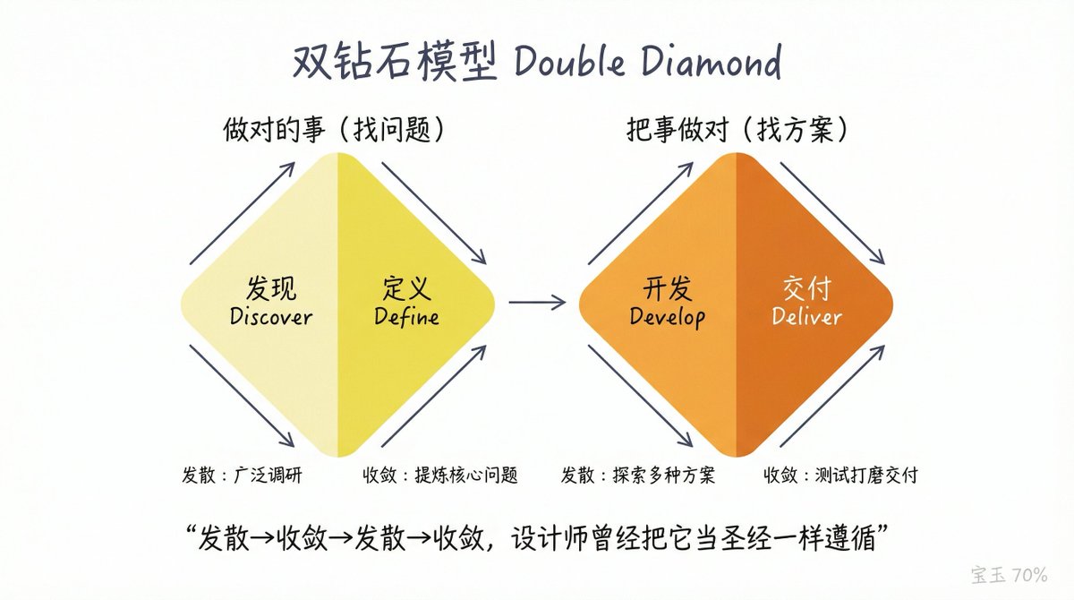 她指的是经典的双钻石模型,先做调研和发散,再收敛,再发散,再收敛。